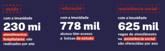 A pesquisa “A contrapartida da Filantropia para o Brasil” mostra que, com a imunidade tributária, instituições filantrópicas retornam quase 10 vezes mais benefícios para a sociedade.