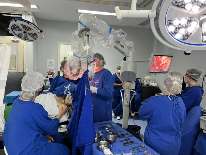 Foram 45 dias entre a descoberta e a cirurgia no hospital de atendimento pelo Sistema Único de Saúde (SUS). O neurocirurgião Carlos Alberto Mattozo foi o responsável pelo procedimento de Daiane. Ele explica que o complicador do tumor em casos como o da paciente é a posição, no trato piramidal, responsável pelos movimentos. Por isso, a cirurgia acordada e o apoio de um neurofisiologista são a melhor opção. “Fizemos a composição de uma estrutura e equipe preparada para aumentar a segurança do procedimento”, complementa.