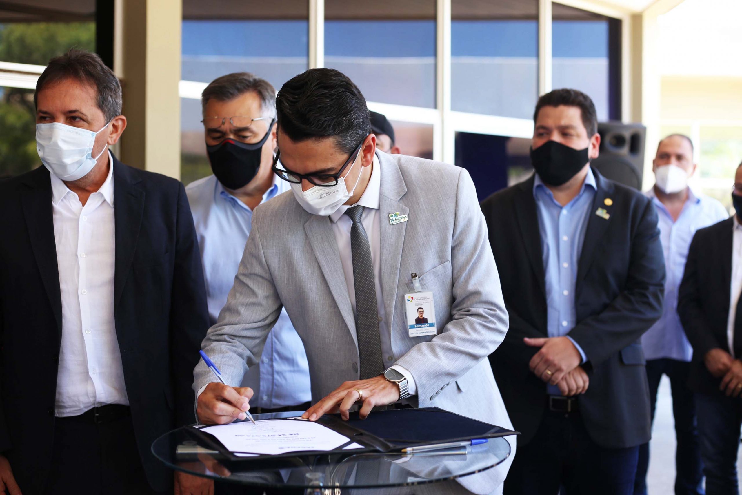 O governador Carlos Massa Ratinho Junior e o secretário de Estado da Saúde, Beto Preto, assinaram nesta sexta-feira (3) o novo contrato entre o Estado e o Hospital Costa Cavalcanti, em Foz do Iguaçu, ampliando o repasse mensal de R$ 2,8 milhões para R$ 3,4 milhões, o que garante a abertura de novos leitos de UTI neonatal e pediátrica.