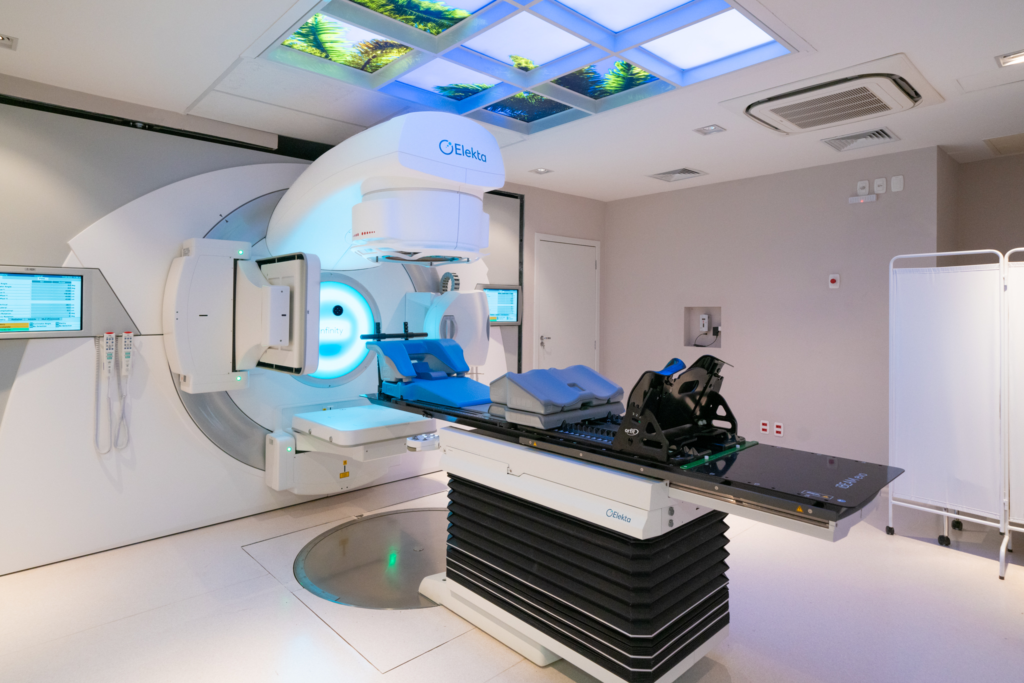 Trata-se do novo acelerador com Modulação da Intensidade (IMRT) – Arcoterapia Volumétrica Modulada (VMAT), uma técnica que adequa a dose da radiação em diferentes partes do tumor. “Isso permite uma distribuição mais homogênea da dose de radiação, aumentando a eficácia do tratamento e reduzindo os efeitos colaterais”, explicou o físico-médico Rodrigo Vieira Barreto.