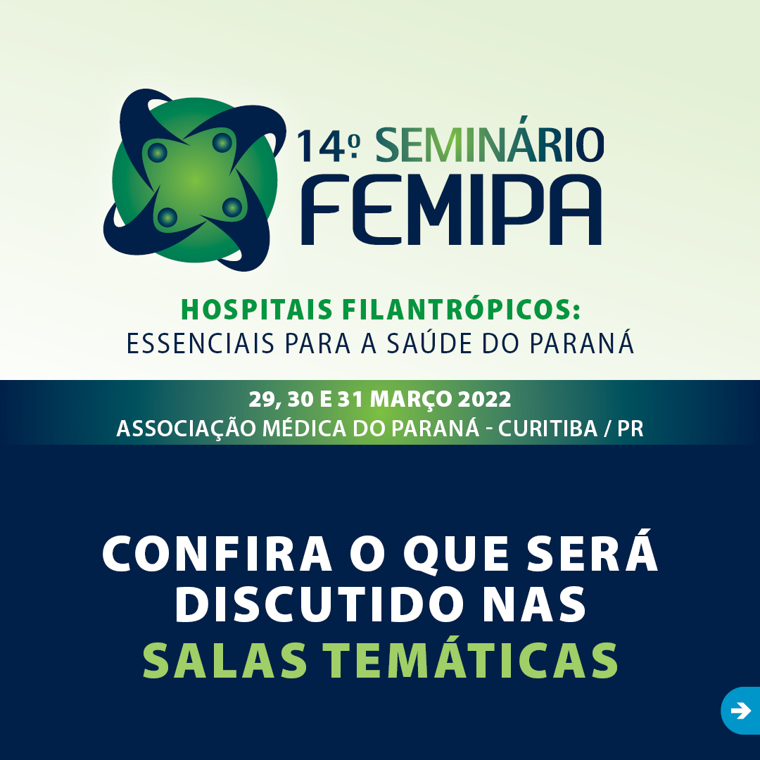 Na parte da tarde do dia 30 de março, estão programadas as salas temáticas, uma das principais e mais aguardadas atrações do Seminário Femipa. Serão quatro assuntos principais – Gestão hospitalar, Gestão de pessoas, Gestão da infraestrutura e logística hospitalar e Gestão de assistência e segurança do paciente – e, dentro das salas, também vão acontecer as apresentações dos classificados no Prêmio Femipa de Melhores Práticas e Criatividade, com os cases que atingiram a melhor pontuação em cada categoria e classe.