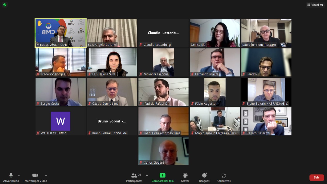 Participaram da discussão representantes da CNSAÚDE (Confederação Nacional da Saúde), ANAHP (Associação Nacional de Hospitais Privados), FBH (Federação Brasileira de Hospitais), ABRAMED (Associação Brasileira de Medicina Diagnóstica), ABIMO (Associação Brasileira da Indústria de Dispositivos Médicos), ABIMED (Associação Brasileira da Indústria de Alta Tecnologia de Produtos para Saúde), ABRAMGE (Associação Brasileira de Planos de Saúde), FenaSaúde (Federação Nacional de Saúde Suplementar), ABRAIDI (Associação Brasileira de Importadores e Distribuidores de Produtos para Saúde, ABIIS (Aliança Brasileira da Indústria Inovadora em Saúde) e o Sindicato dos Hospitais, Clínicas e Laboratórios.