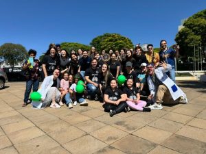 Na chegada à Praça Santos Dumont, a Fanfarra do Curso de Medicina deu ritmo e entusiasmo ao encontro, preparando o público para os discursos. Quem também marcou presença foi o projeto Unparlhaços, que distribuiu alegria durante a caminhada.
