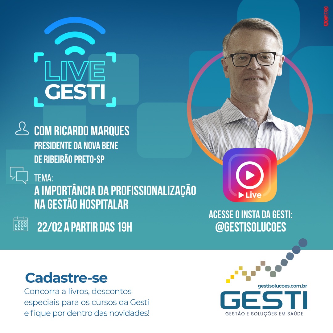 A Gesti, empresa parceira da Femipa e uma das patrocinadoras do 14º Seminário Femipa, vai realizar, no dia 22/02, a partir das 19h, a live “A importância da profissionalização na gestão hospitalar”. O palestrante será Ricardo Marques, presidente do Hospital Beneficência Portuguesa de Ribeirão Preto-SP (Nova Bene). Na live, ele vai abordar os principais pontos sobre a gestão profissionalizada na área clínica e hospitalar e como essa estratégia tem contribuído para a experiência bem sucedida como presidente do Nova Bene.