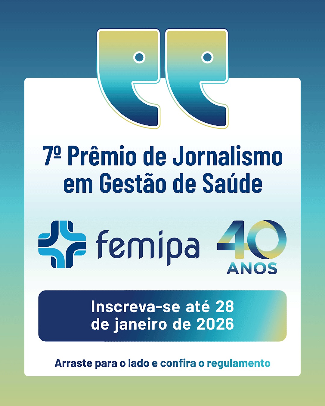 Clique aqui para acessar o regulamento completo do 7º Prêmio Femipa de Jornalismo em Gestão da Saúde.