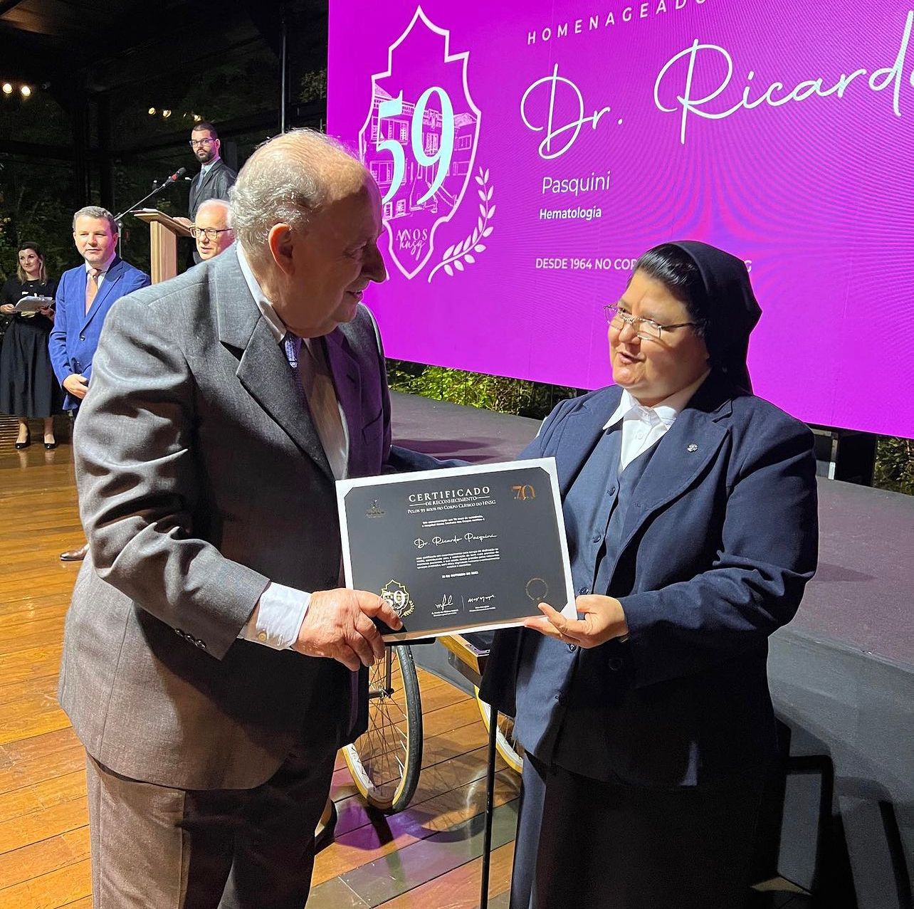 A honraria foi entregue para médicos com 29 a 59 anos no corpo clínico do hospital, que receberam das diretoras Irmã Maria de Fátima Sobral e Irmã Maria do Carmo Marques, uma medalha e um certificado, como forma de gratidão por fazerem parte da história do HNSG. Os médicos foram chamados por tempo de efetivação, dos mais recentes aos mais antigos no hospital, sendo os médicos Dr. Ricardo Pasquini e Dr. Bruno Maurizio Grillo, com mais tempo na instituição, completando 59 anos.