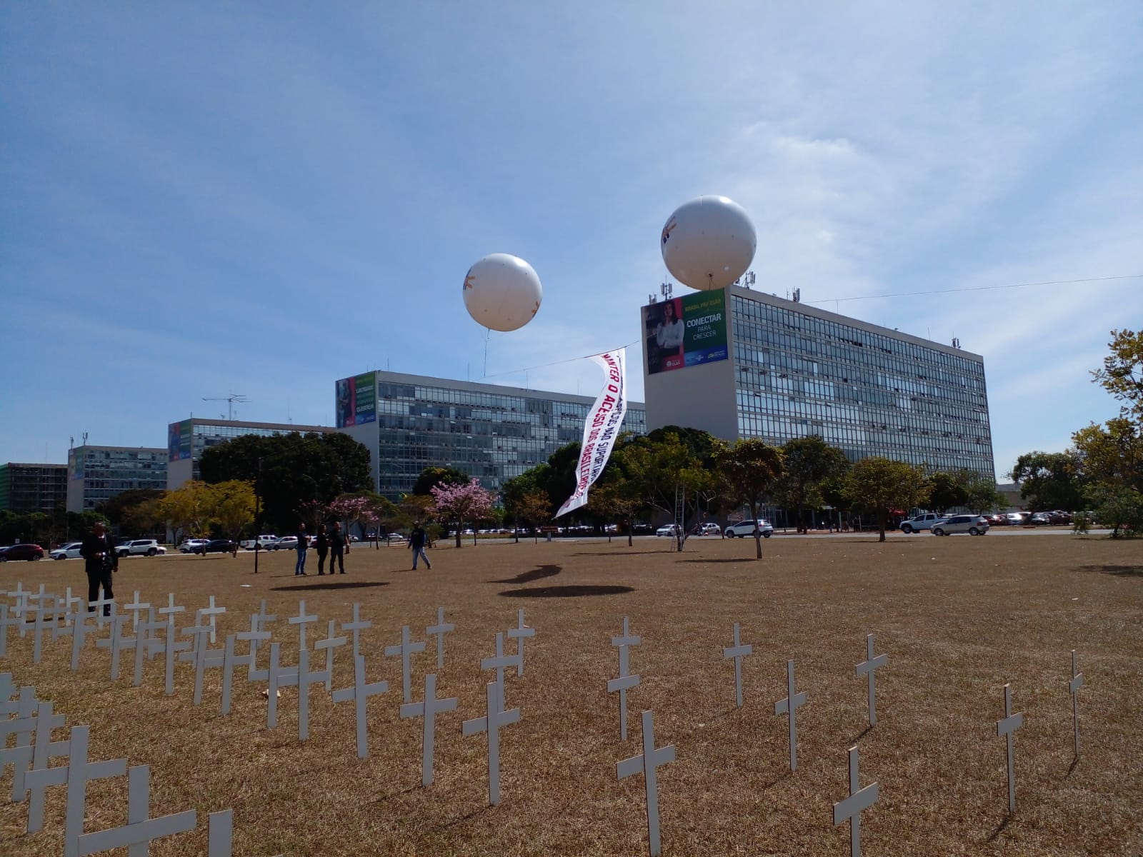 Em ato na manhã desta quarta-feira (18), em Brasília, a Confederação das Santas Casas e Hospitais Filantrópicos (CMB) colocou 1,8 mil cruzes na Esplanada dos Ministérios, para chamar a atenção do poder público para as dificuldades financeiras que as instituições têm vivido. Cada cruz representa um hospital filantrópico do país. A ação faz parte do movimento “As Santas Casas não suportam mais”. Os principais veículos de comunicação do país, como TV Globo, Estadão, Band Bahia, Band Brasília, CNN, Agência Brasil, entre outros, fizeram a cobertura da manifestação. Além do ato simbólico, os colaboradores da CMB estiveram no Aeroporto Internacional de Brasília para distribuir panfletos sobre o movimento “As Santas Casas não suportam mais”. O objetivo da ação foi apresentar a deputados, senadores e autoridades do poder executivo a grave crise no setor.