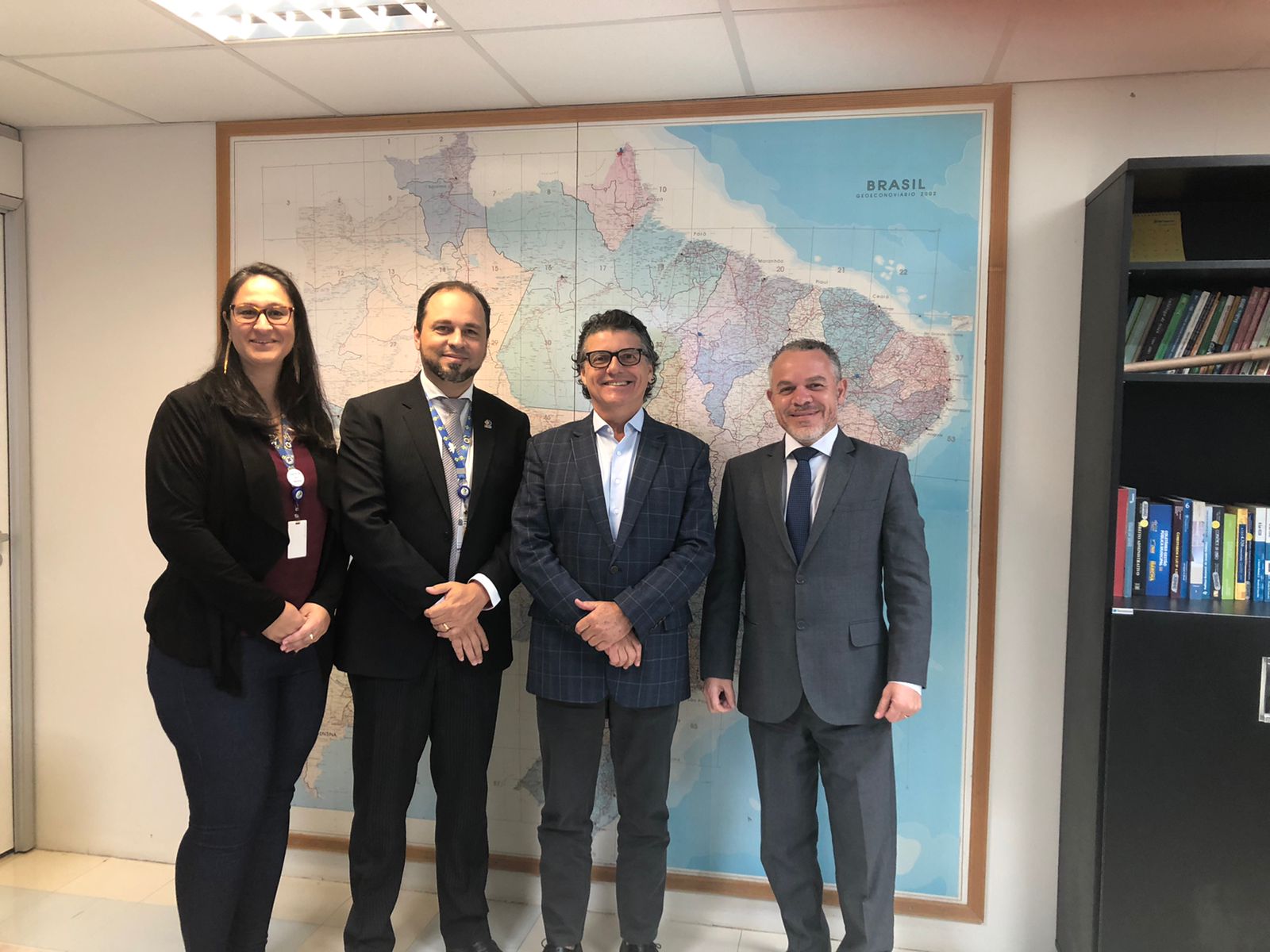 Nessa terça-feira (24), o presidente da Confederação das Santas Casas e Hospitais Filantrópicos (CMB), Mirocles Véras, e o diretor-geral, Mário César Homsi Bernardes, participaram de uma reunião com o diretor-executivo do Fundo Nacional de Saúde (FNS), Dárcio Guedes Júnior, e a gerente de projetos, Marina dos Santos Natividade Alves, para tratar de todo o processo envolvendo a contratação de créditos com a garantia dos recebíveis do Sistema Único de Saúde (SUS).