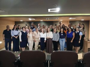O encerramento do ciclo de 2025 trouxe a facilitadora Renata Lima, pedagoga, gestora de pessoas e comunicadora, que conduziu encontros em Foz do Iguaçu, no Hospital Itamed – Fundação Itaiguapy, Londrina, na Santa Casa de Londrina, e em Curitiba, no Hospital São Vicente. Durante a semana, ela vivenciou realidades distintas, mas com desafios semelhantes: “Iniciei o projeto em Foz do Iguaçu, quarta-feira eu estava em Londrina, e hoje aqui em Curitiba fechando com chave de ouro, para a gente falar realmente sobre a importância da liderança na atuação diária dos hospitais, porque nós somos líderes.”