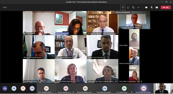 Em reunião por videoconferência nesta quarta-feira (28), realizada pelo Fonif (Fórum Nacional de Entidades Filantrópicas) representantes do setor expuseram ao subsecretário de Gestão Corporativa da Receita Federal, Moacyr Mondardo Júnior, a importância da área filantrópica de saúde e sua contribuição para o país. Representando a CMB, participou o vice-presidente da Confederação, Flaviano Feu Ventorim. Também esteve presente o deputado federal e presidente da Frente Parlamentar de Apoio a Santas Casas, Hospitais e Entidades Filantrópicas, Antonio Brito, que intermediou a realização da atividade.